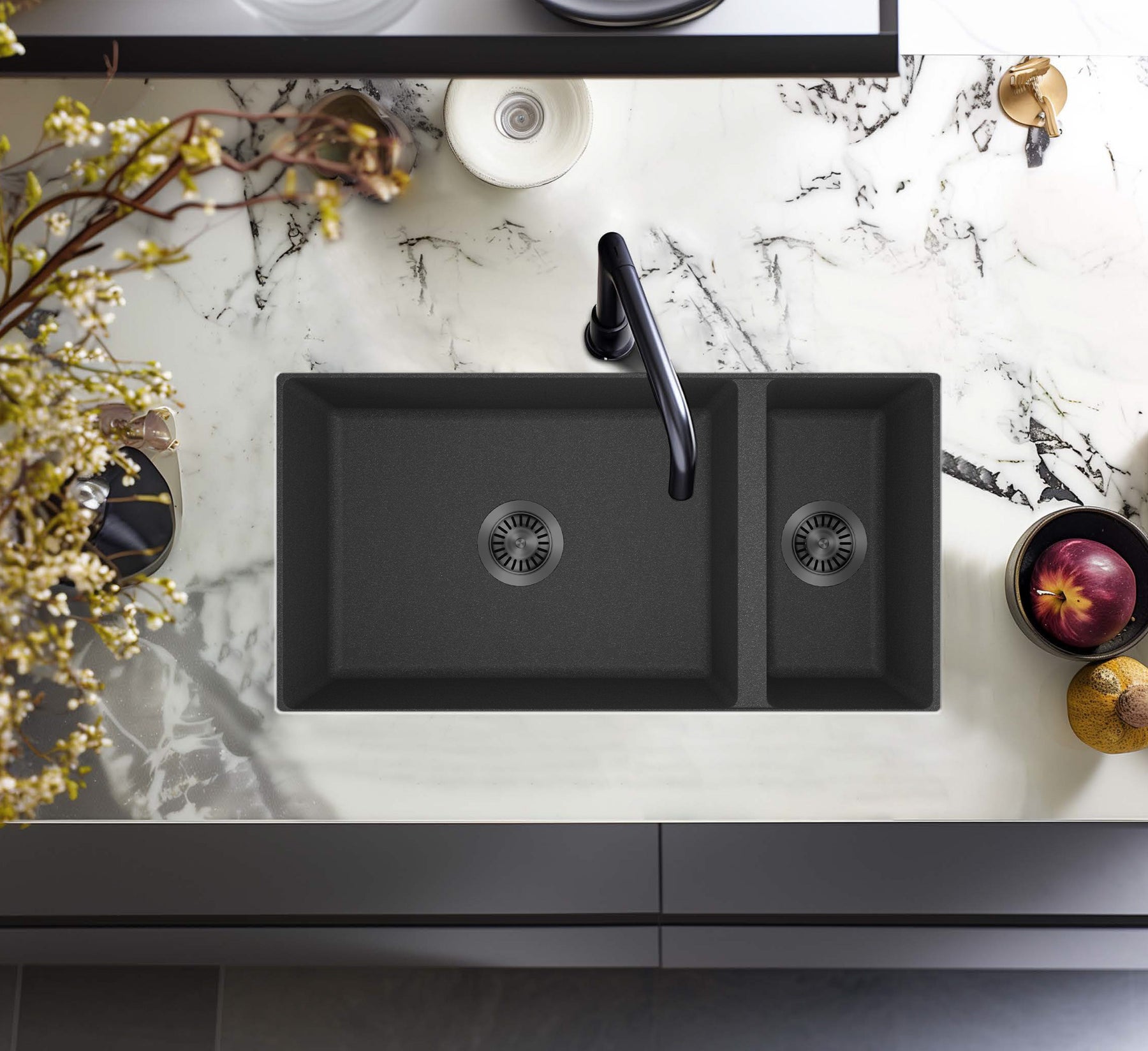 Évier de cuisine sous plan en granit – cuve simple ou double